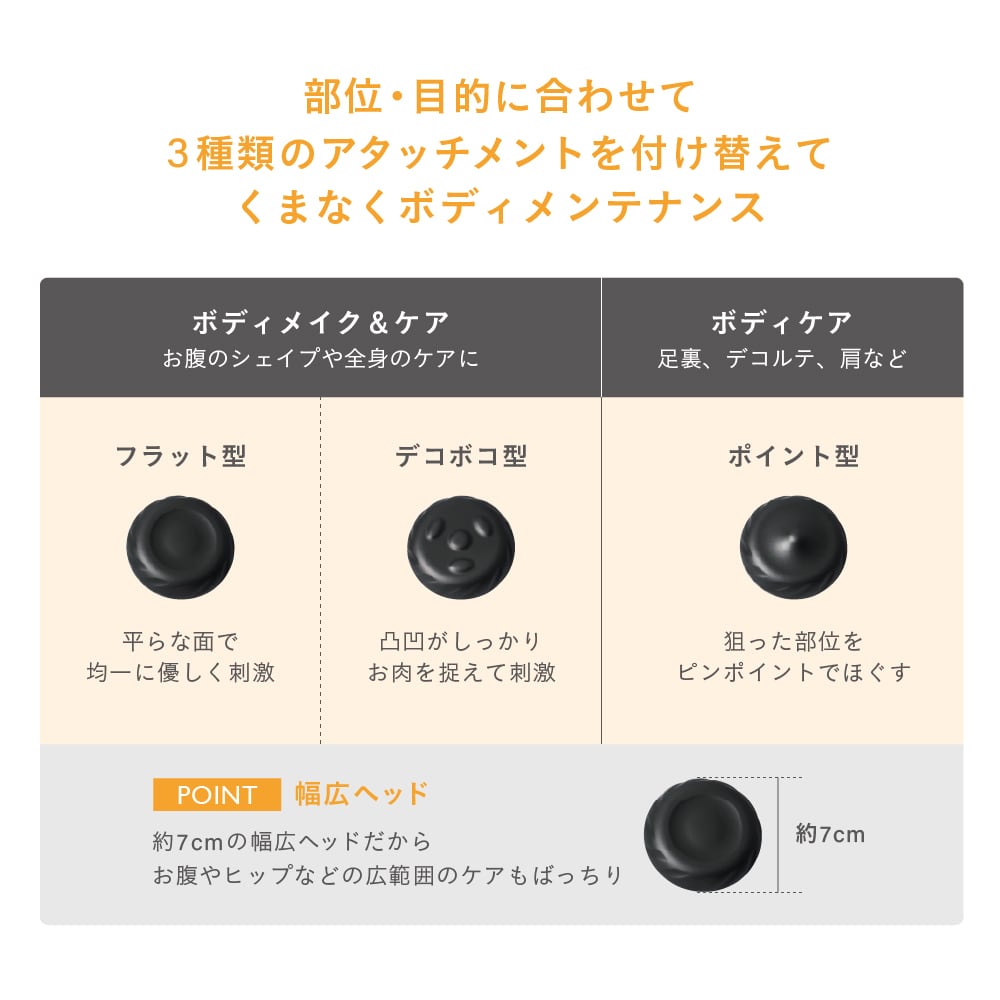 ◎付け替えできる3種類のアタッチメント付き