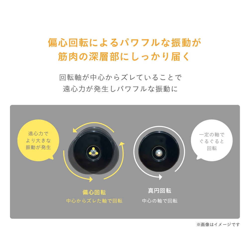 ◎偏心回転によるパワフル振動が筋肉深部にまでアプローチ