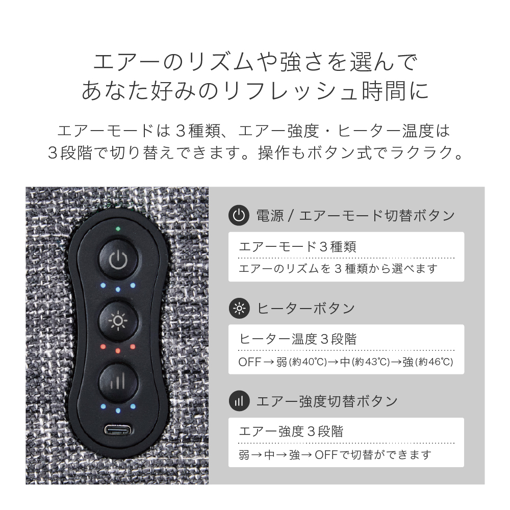 ◎エアー強度3段階(弱/中/強)